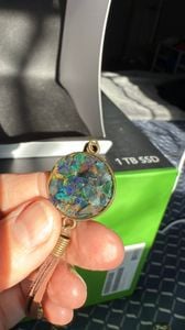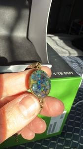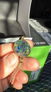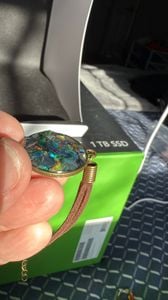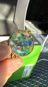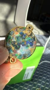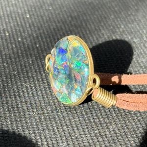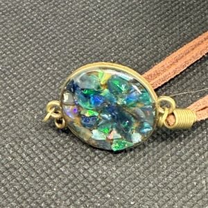 0 savesHand made bracelet made with Natural Multi Flash Ethiopian Welo Fire Opal fragments. Set in a round bronze setting with a leather band.